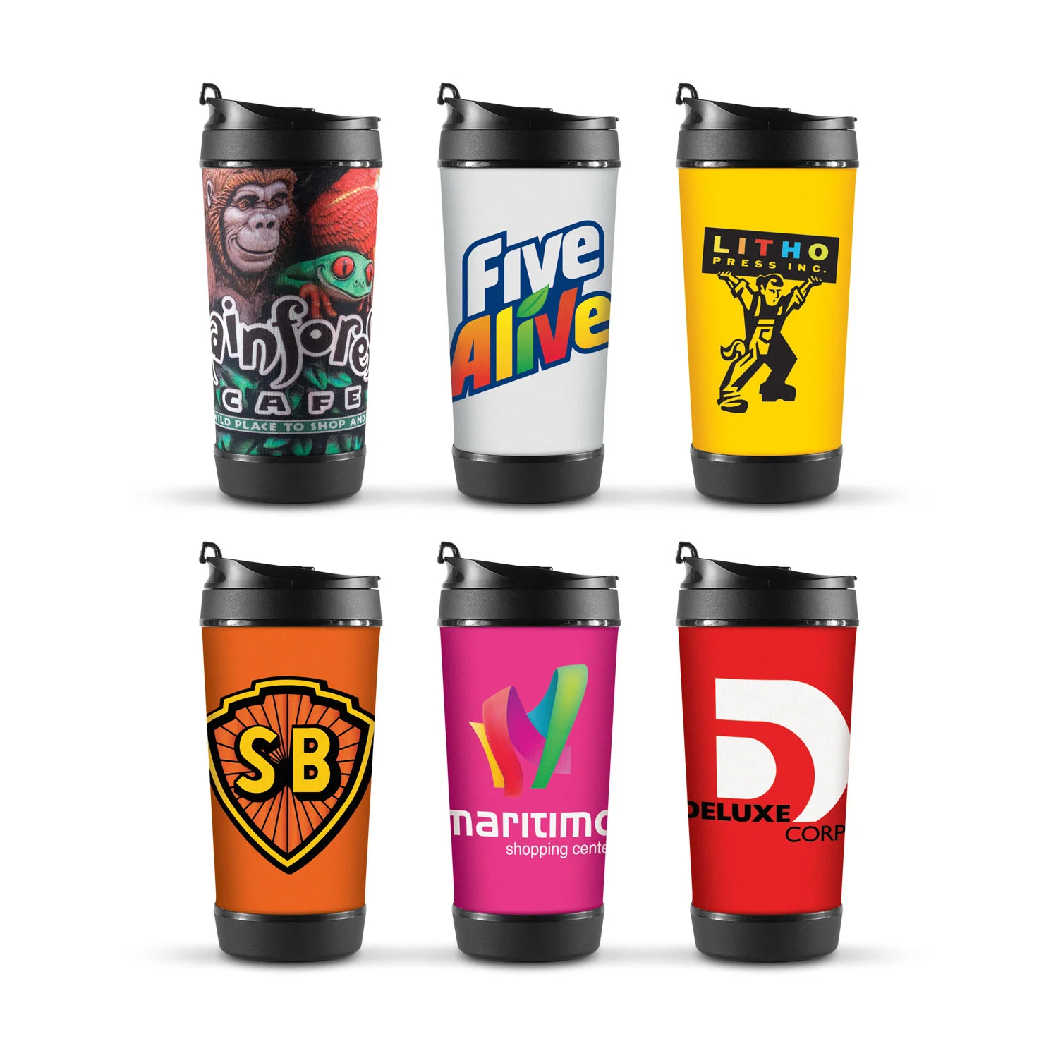 Reusable 350ml coffee cup with a heat resistant silicon band and screw on lid. Manufactured from tough BPA free, food grade polypropylene which is dishwasher safe. Design your own Express Cup with 1728 different colour combinations available ex stock.