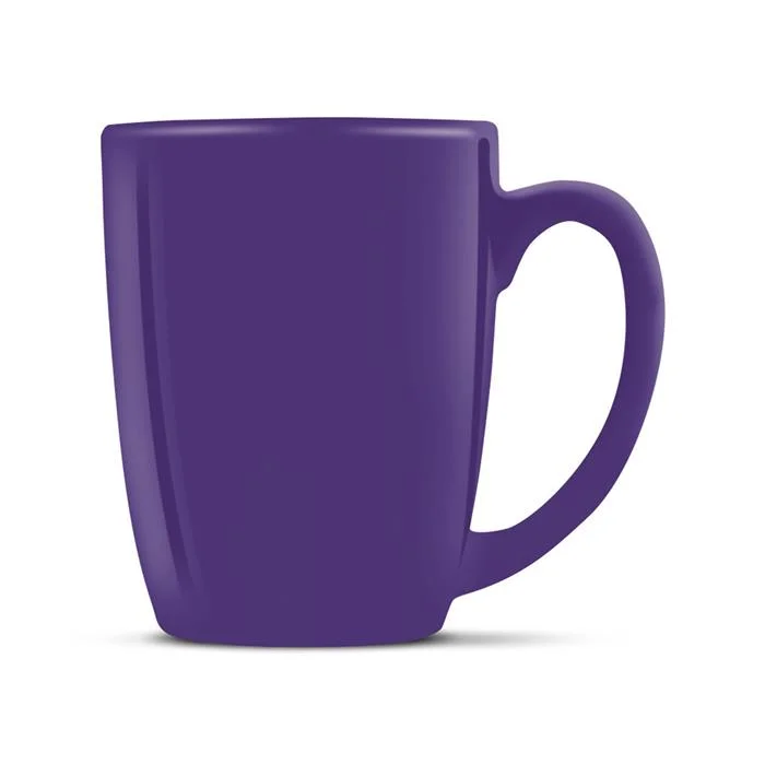 Contoured, 300ml round stoneware coffee mug presented in a Black gift box. The inside of the mug is White with a stunning range of bright outer colours and the branding options available are dishwasher safe.