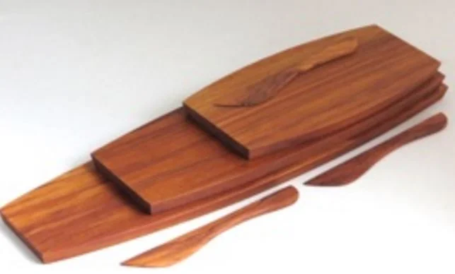 Handcrafted in Hokitika from recycled waste, ancient logs or sustainably managed timber, these delightful waka boards would make a great gift for anyone. Available in Kauri or Rimu. Includes a knife. Can be engraved or burnt with a logo. Comes in a lovely natural cardboard gift box. Boards available in different sizes. This pricing is for the small board - 135mm x 290mm