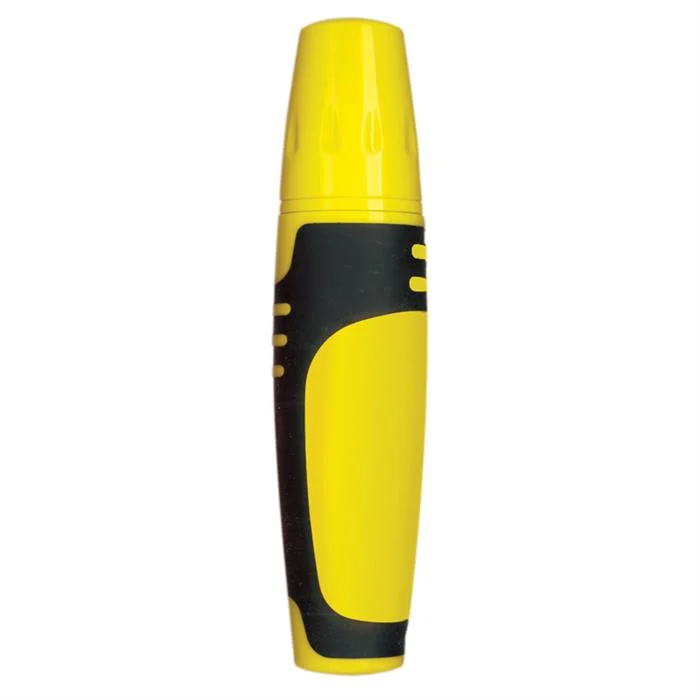 Design inspired highlighter with a co-moulded soft touch rubber insert in the barrel.