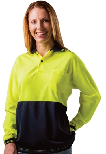 Need a little extra protection? The Hi Vis Long Sleeve Polo is ideal for those jobs that require you to go the extra mile165gsm 100 polyester. Quick dry and breathable. Contrast navy colour panel. Left chest pocket. Complies with AS/NZS 1906. 4:2010, AS/NZS 4602. 1:2011