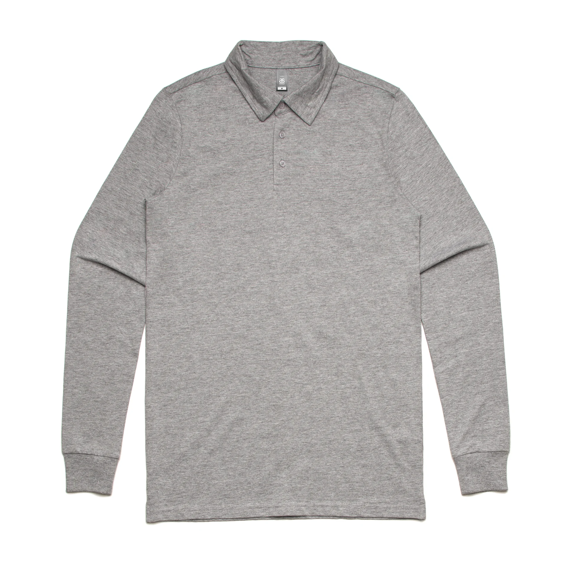 Regular fit. Long sleeve collared polo shirt, 3 button placket, tonal buttons, split detail at sides. Heavyweight, 200 GSM. 100% corded cotton (marles 15% polyester). Side seamed, double needle hems, preshrunk to minimise shrinkage. Also available in black.