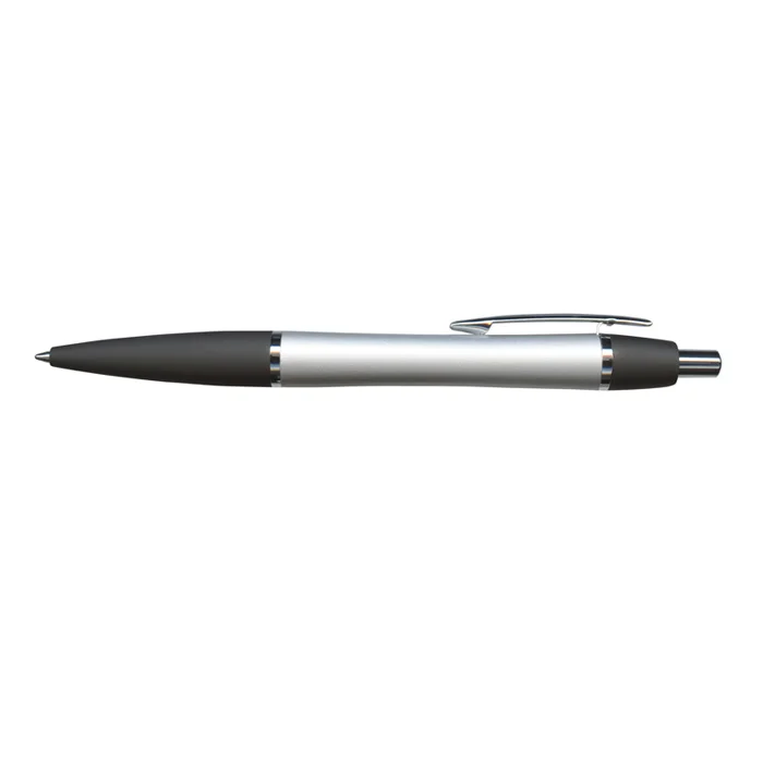 Retractable plastic and metal ball pen with a soft touch rubber lacquered grip. Has a Blue ink refill with 1200 metres of writing ink. Available in white, blue and black.