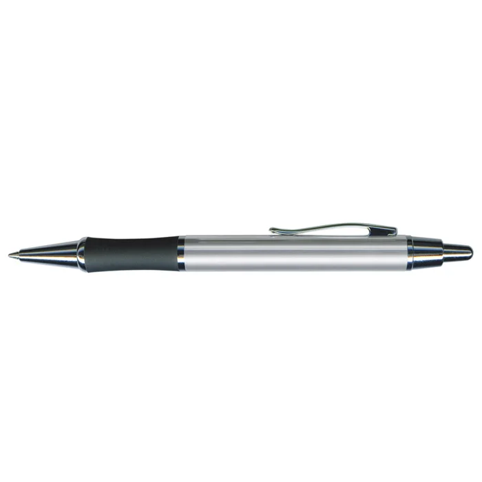 Retractable aluminium ball pen with a soft rubber grip. Has a TRENDS Large Volume refill with 1800 metres of German manufactured DOKUMENTAL ink and a tungsten carbide ball for improved writing quality. Blue ink is available for an extra charge and the barrel laser engraves to an oxidised White colour. Available in blue and black.