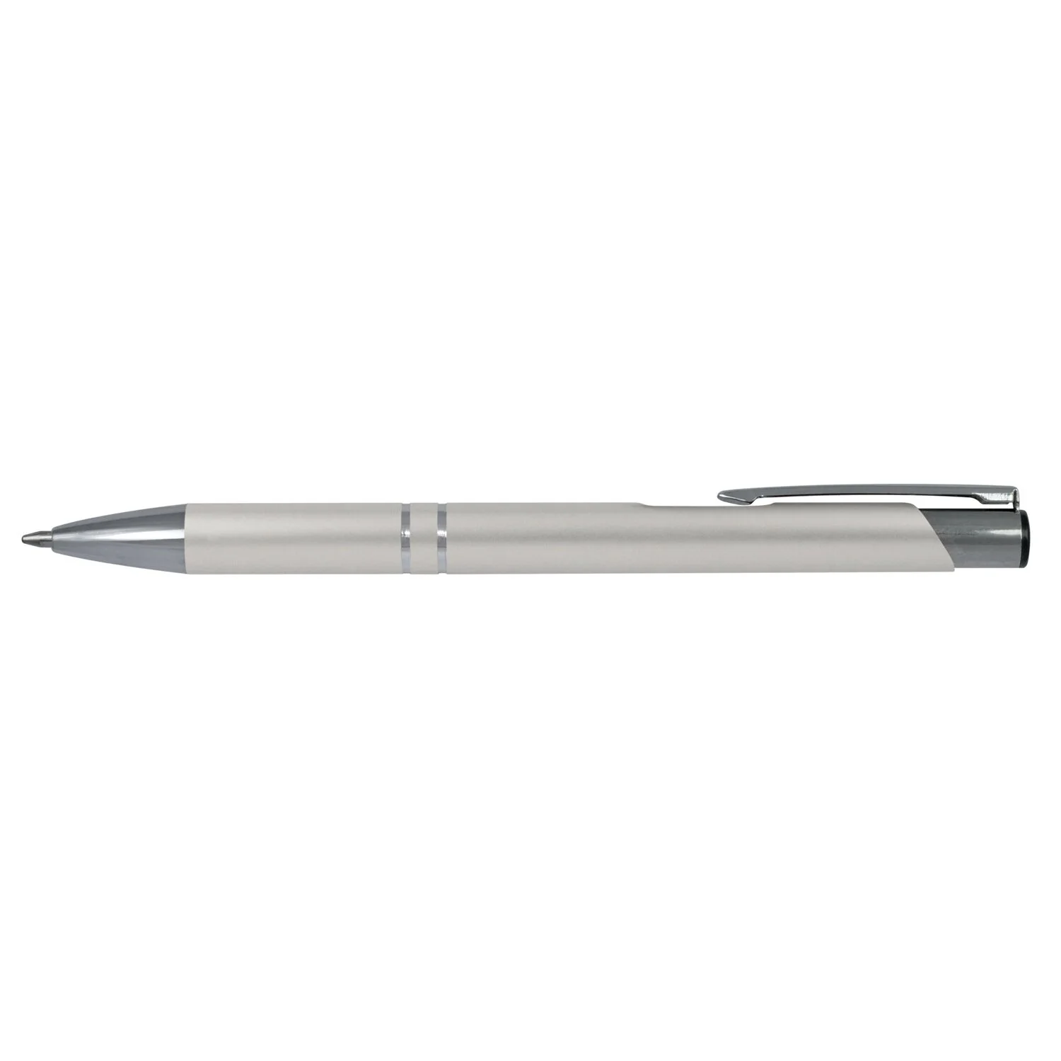 Retractable aluminium ball pen which has a Black ink refill with 1200 metres of writing ink. Blue ink is available for an extra charge. Laser engraves to an oxidised White colour. Available in a range of colours.