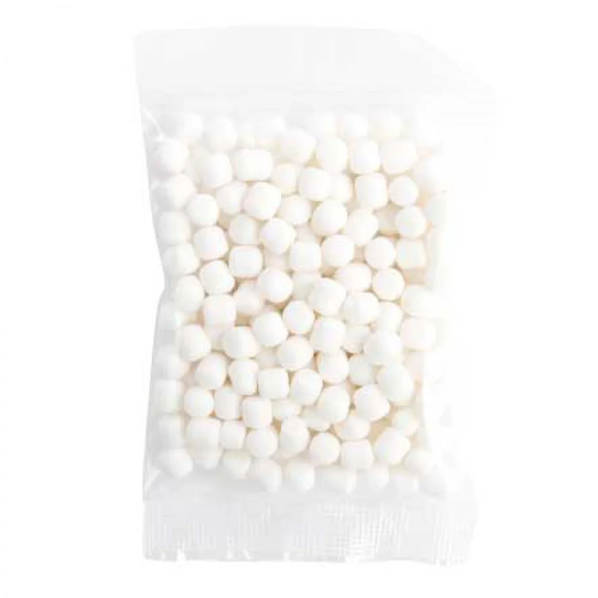 100 gram Confectionery Bag filled with Mini Mints Filling / Type: Mini Mints Packaging: Clear Cello Bag Dimension: 120mm x 90mm Weight: 100 grams Packaging Colour: Clear