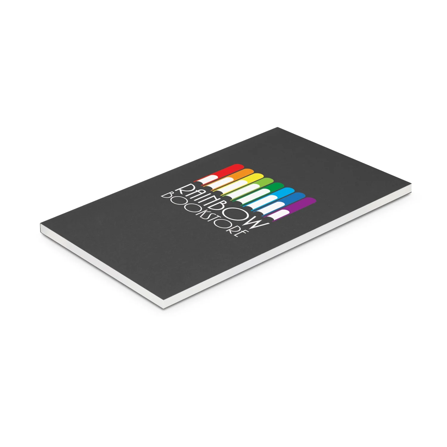 Perfect bound note pad in three handy sizes with 60 lined pages and a cardboard cover.