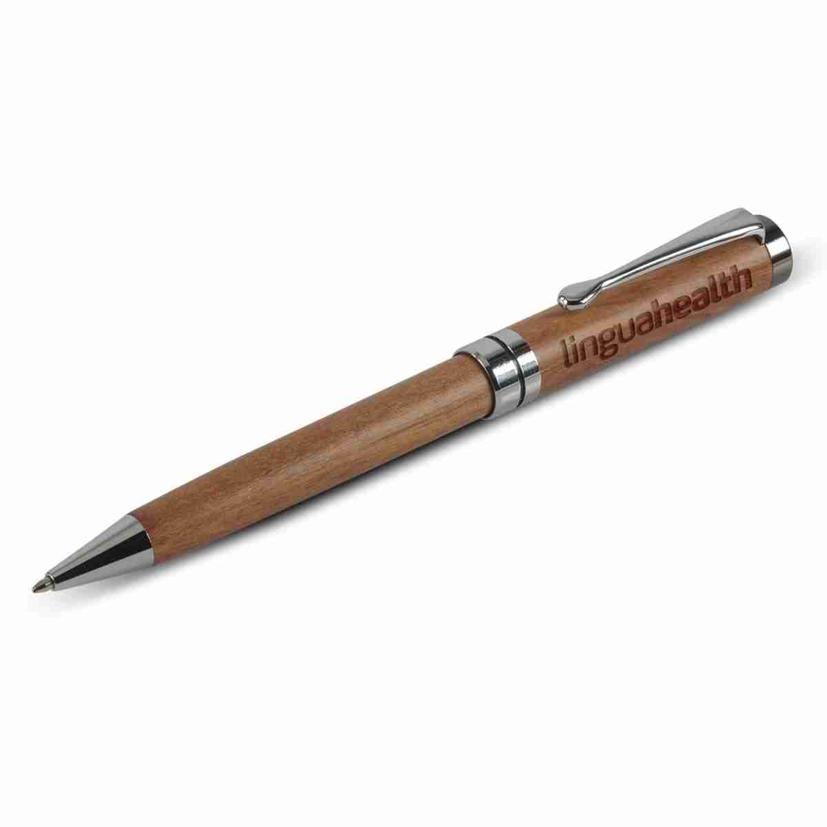 Twist action ball pen manufactured from genuine New Zealand Rimu with shiny chrome trim