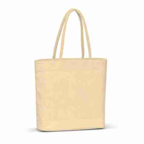 High fashion laminated natural jute tote bag with padded cotton handles.