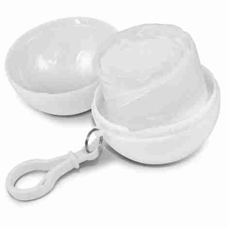 Handy emergency raincoat in a round plastic case. It has a plastic clip which is ideal for attaching it to a bag or a belt loop.
