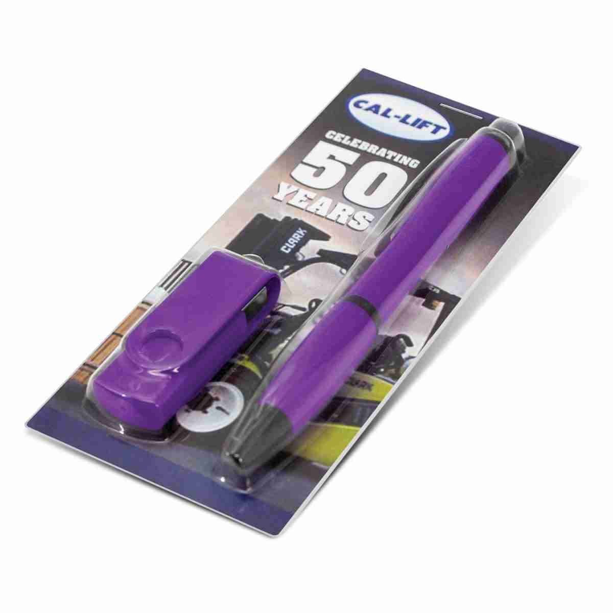 Affordable blister packed gift set with a Vistro Fashion Stylus Pen and a 4GB Helix Flash Drive. The backing card offers an exciting branding opportunity and it can be printed in full colour on both sides. The back of the card is ideal for communicating information about products, services, special offers etc
