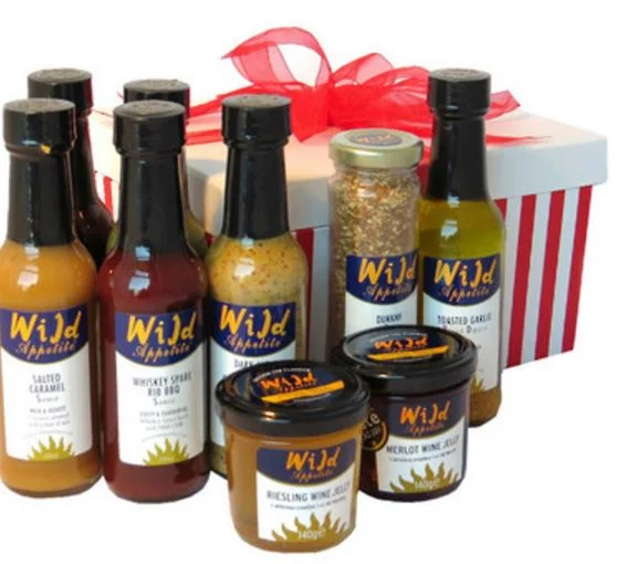 1x Moroccan Mango Chutney 270g, 1x Mediterranean Bread Dipper 150ml, 1x Dukkah 88g, 1x Wine Jelly Merlot 150ml, 1x Blood Orange & Poppy Seed Salad Dressing 150 ml, 1x Smokey Barbecue Sauce 150ml, 1x Strawberry Chocolate Champagne Sauce 150ml, 1x Ricci Bikkies Tomato, Oregano, Garlic & Parmesan