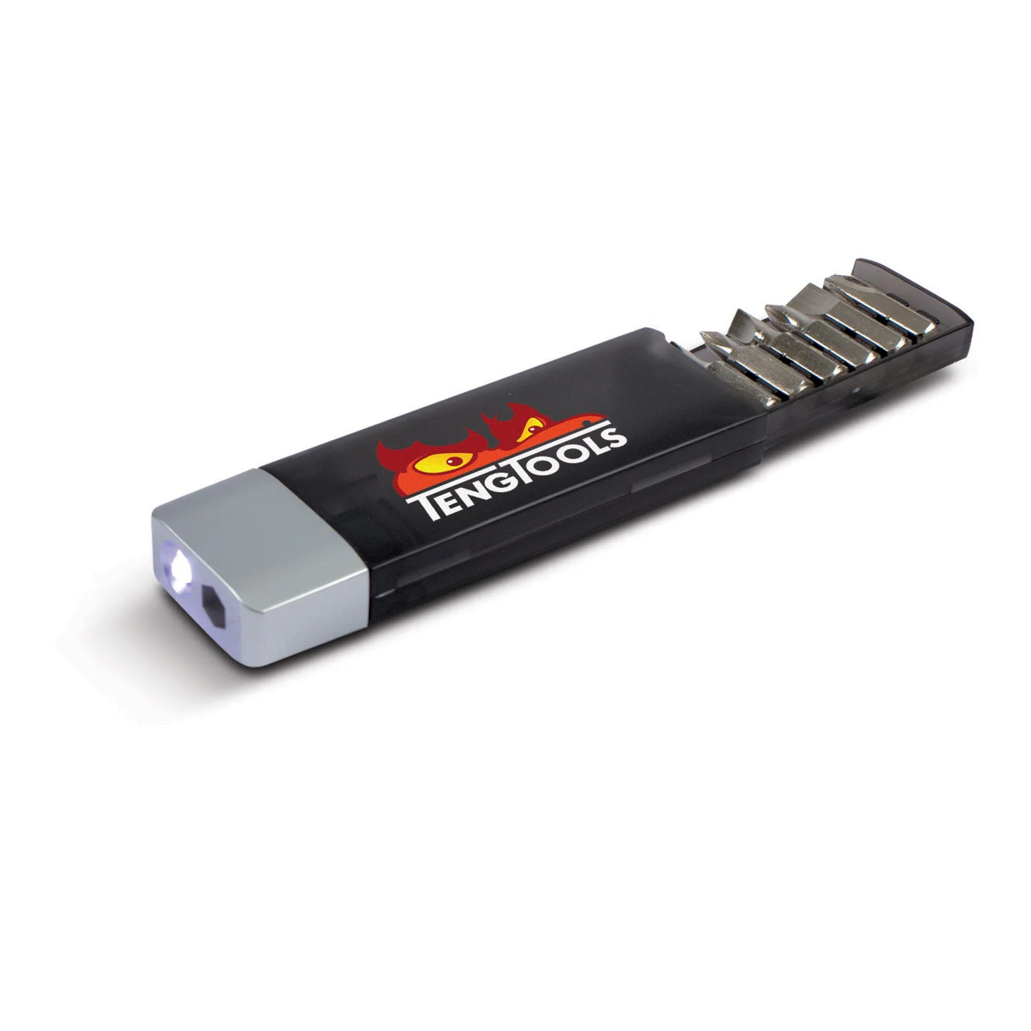 Handy screwdriver set with six interchangeable attachments complete with a built in LED torch and strong secure clip.