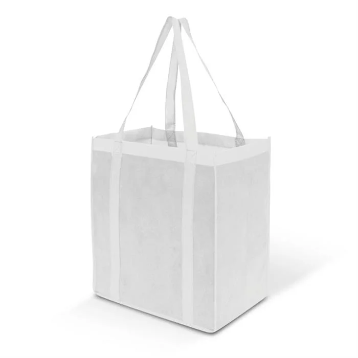 Large reusable tote bag at a nice price point for carrying bulky items and groceries. Manufactured from 80gsm eco-friendly non-woven material which is able to be recycled. Available in red, blue, navy and black.