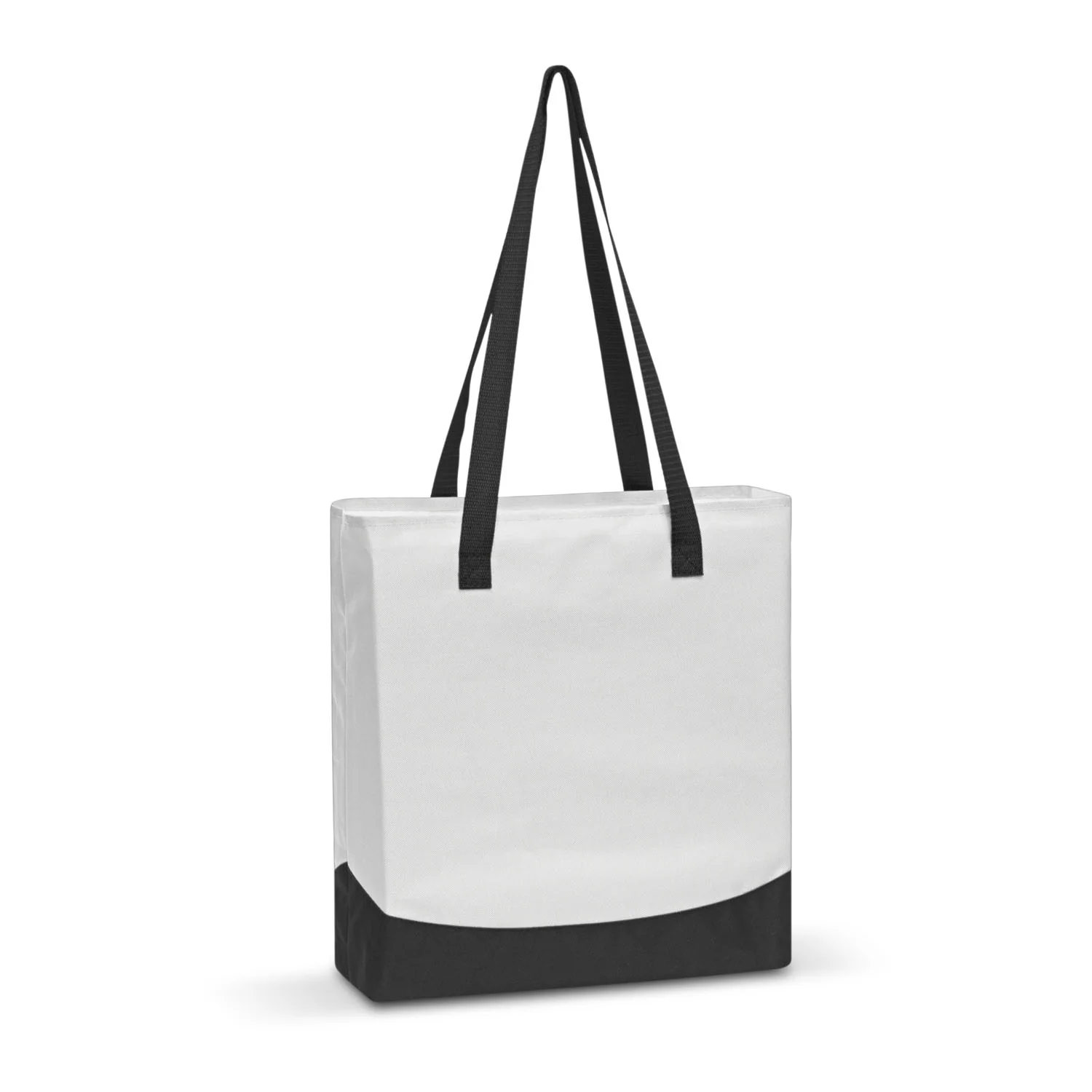 Smart two tone tote bag manufactured from 600D polyester with reinforced handles.