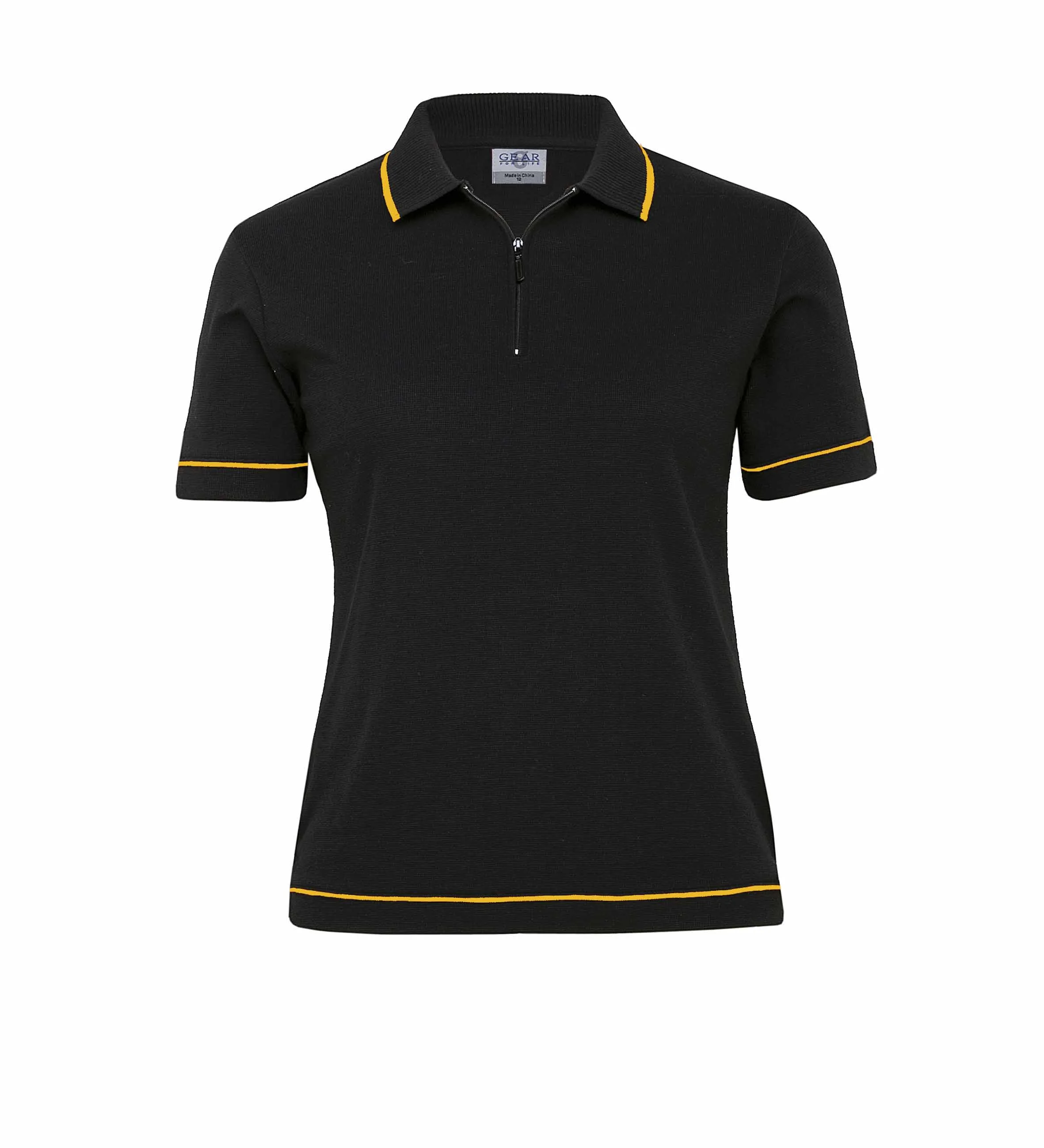 150gsm 100% micro poly mini waffle, Moisture wicking, UV protection, Self fabric collar, Concealed zipped plaquet with DRI GEAR puller, Twin needle detailing, DRI GEAR side pip.