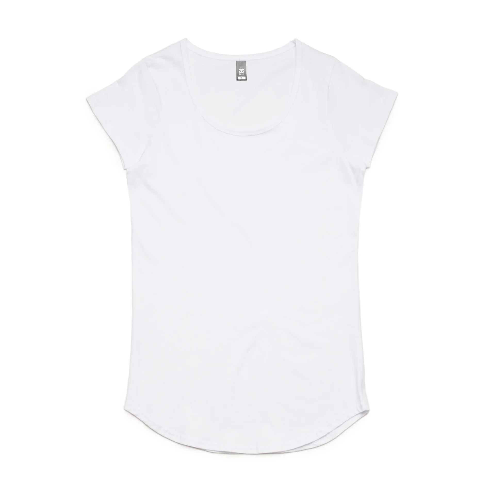 Regular fit. Scoop neck, capped sleeves, curved tails. Lightweight, 150 GSM, 34-singles. 100% combed cotton (marles 15% polyester). Self-fabric binding on neck, side seamed, double needle hems, preshrunk to minimise shrinkage. Available in a range of colours.